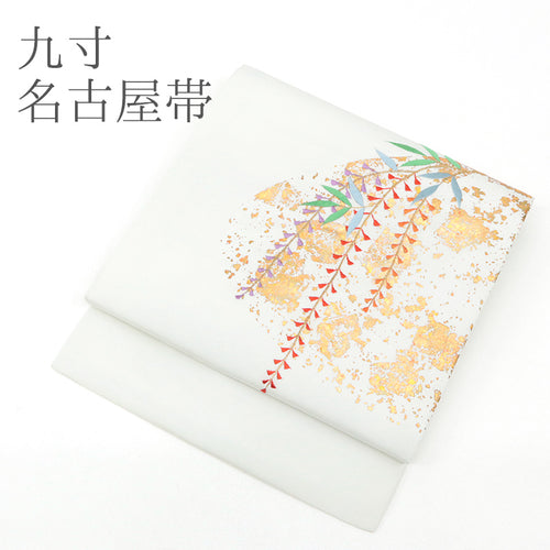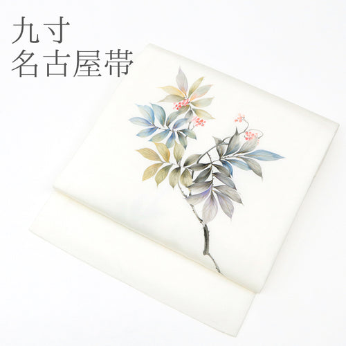 名古屋帯 白地 南天の彩り ( オフホワイト )