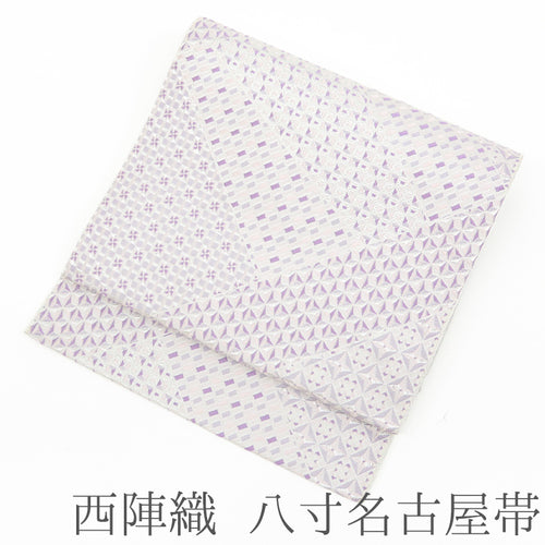 名古屋帯 西陣織 八寸 切継小紋 幾何学文様 薄紫