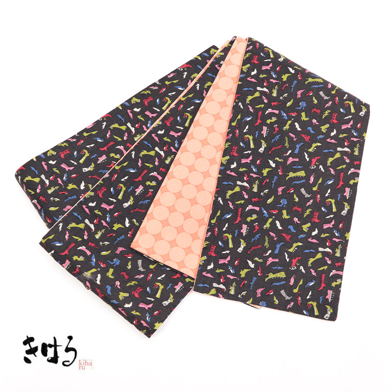 ブランド「きはる」のおしゃれモダンな半巾帯。どちらを表にしてもOKなまさにリバーシブル