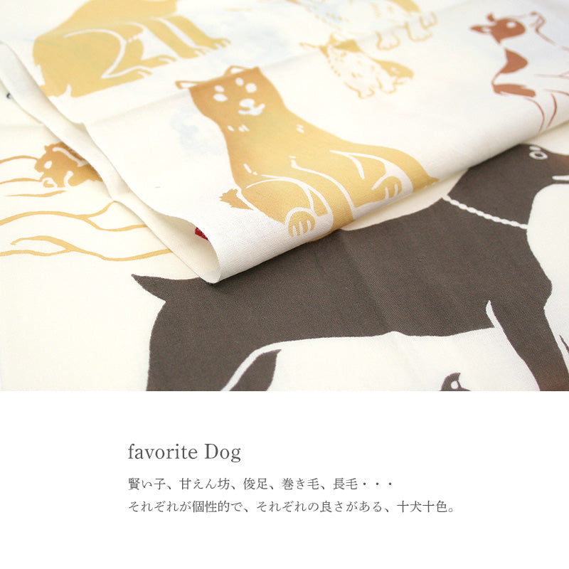 手ぬぐい 生き物「favorite Dog 50028」《kenema けねま》クリーム地/犬/ドッグ/わんこ/ワンちゃん/手拭い/てぬぐい