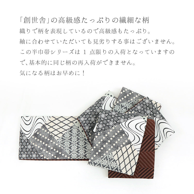 この半巾帯シリーズは1点限りの入荷となっていますので、基本的に再入荷ができません。