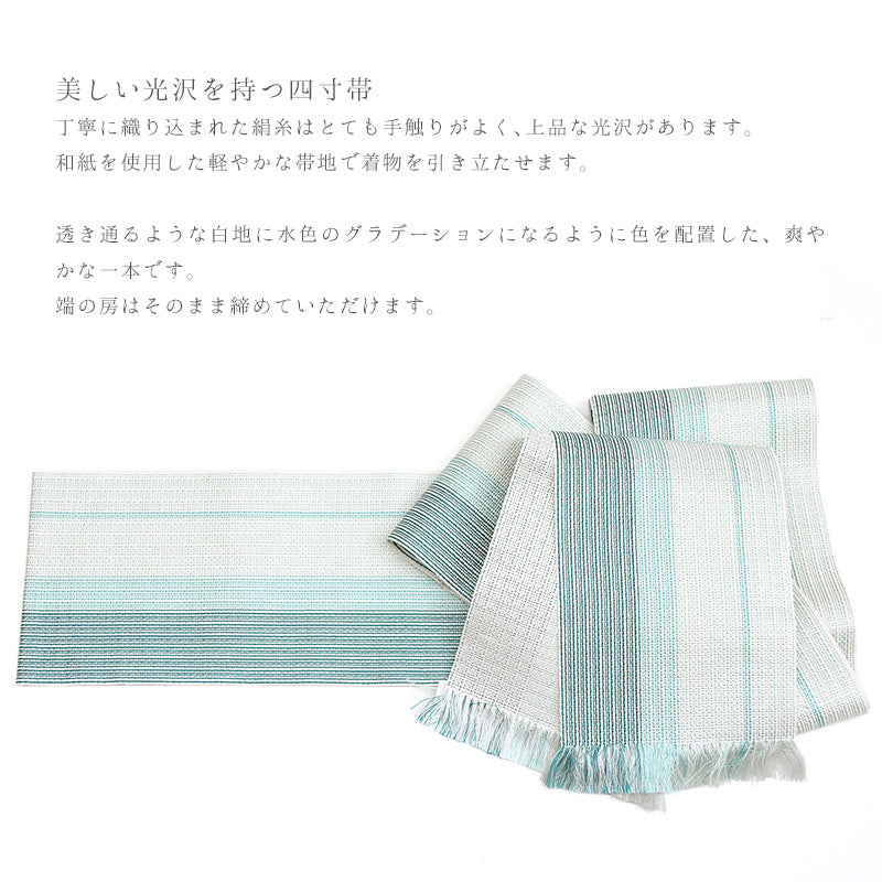 通年結んでいただける便利な四寸帯お着物にはもちろん、浴衣にもお召しいただけます。