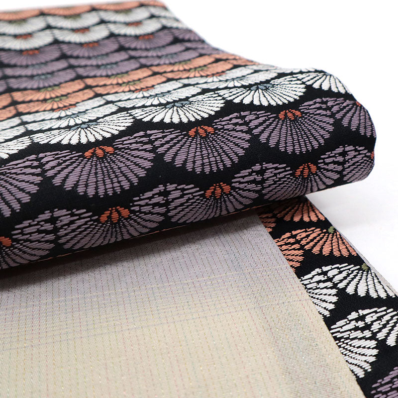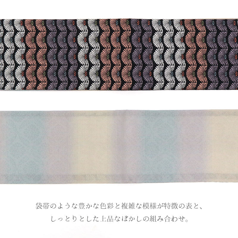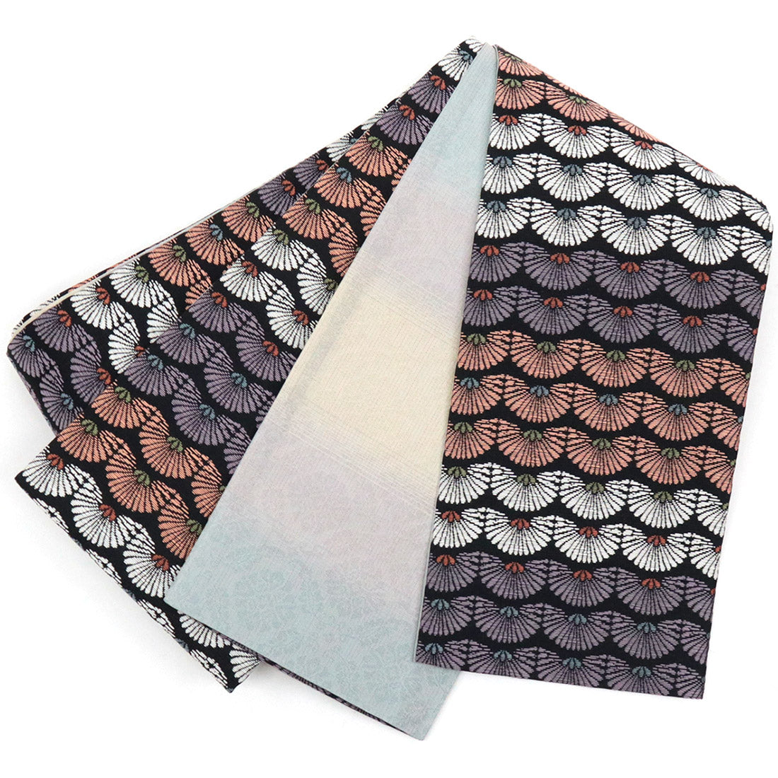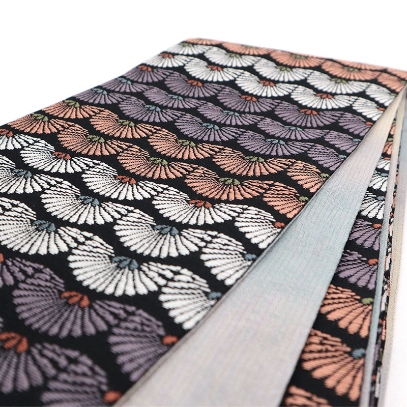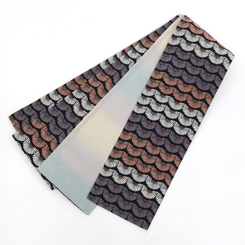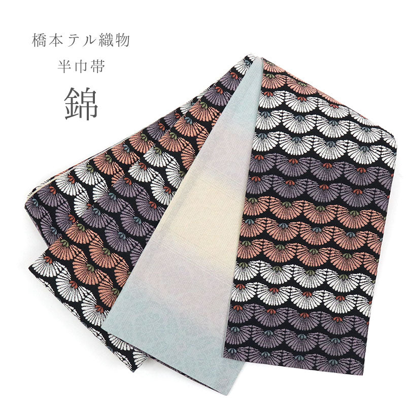 半巾帯 橋本テル謹製 ブラック 黒地に青海菊 ホワイト ピンク パープル くすみカラーぼかし -錦-
