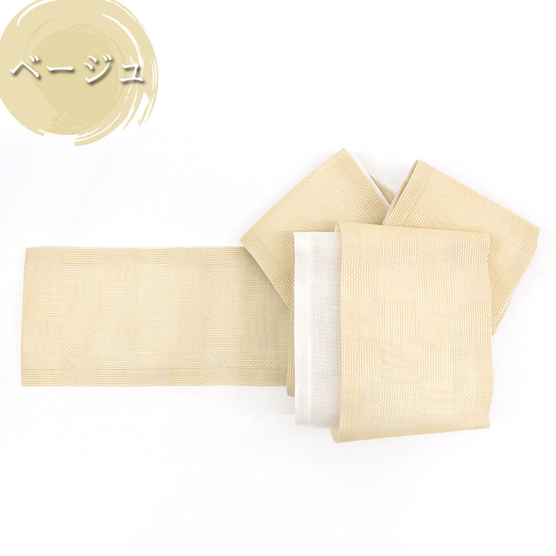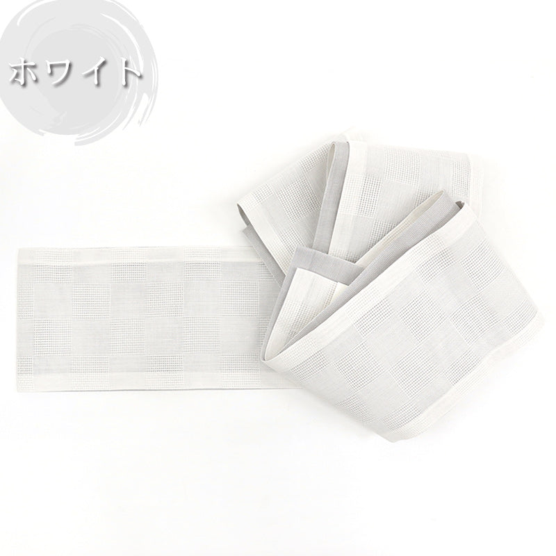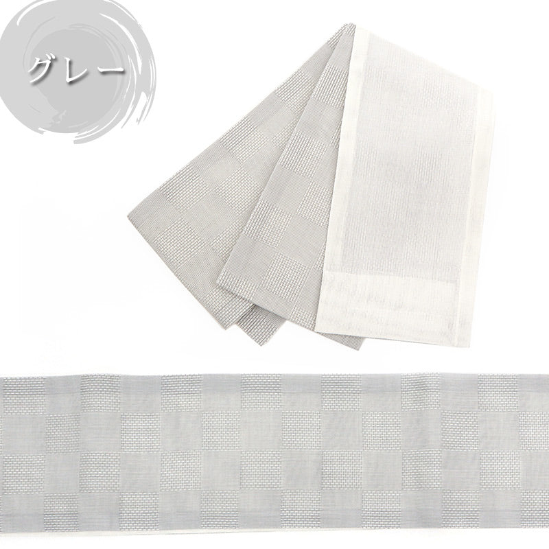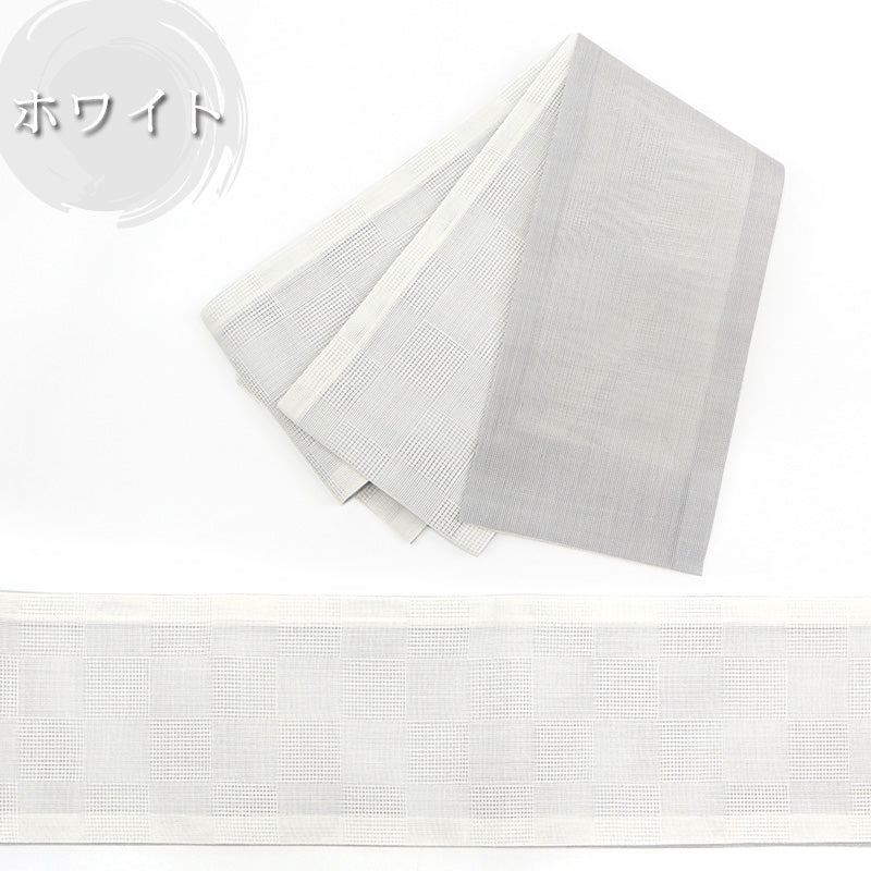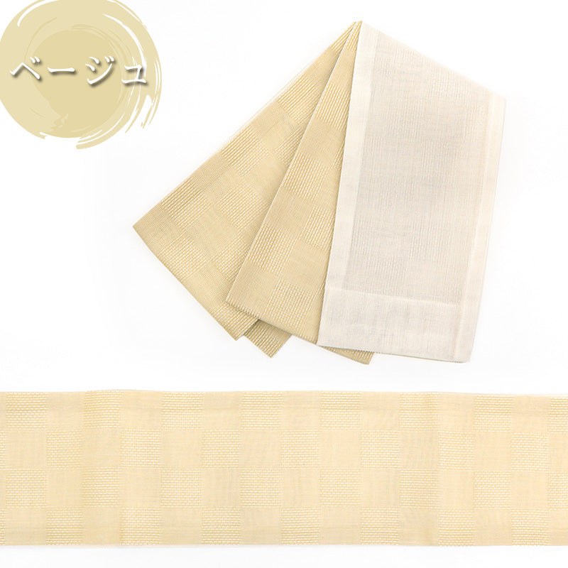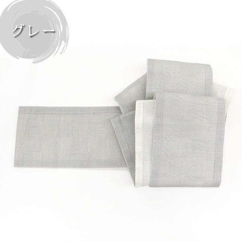 シンプルなデザインの半巾帯は、着物だけでなく浴衣帯としてもお使いいただけます。夏のカジュアルな木綿、絽・紬の着物などの普段のお着物にもピッタリ。