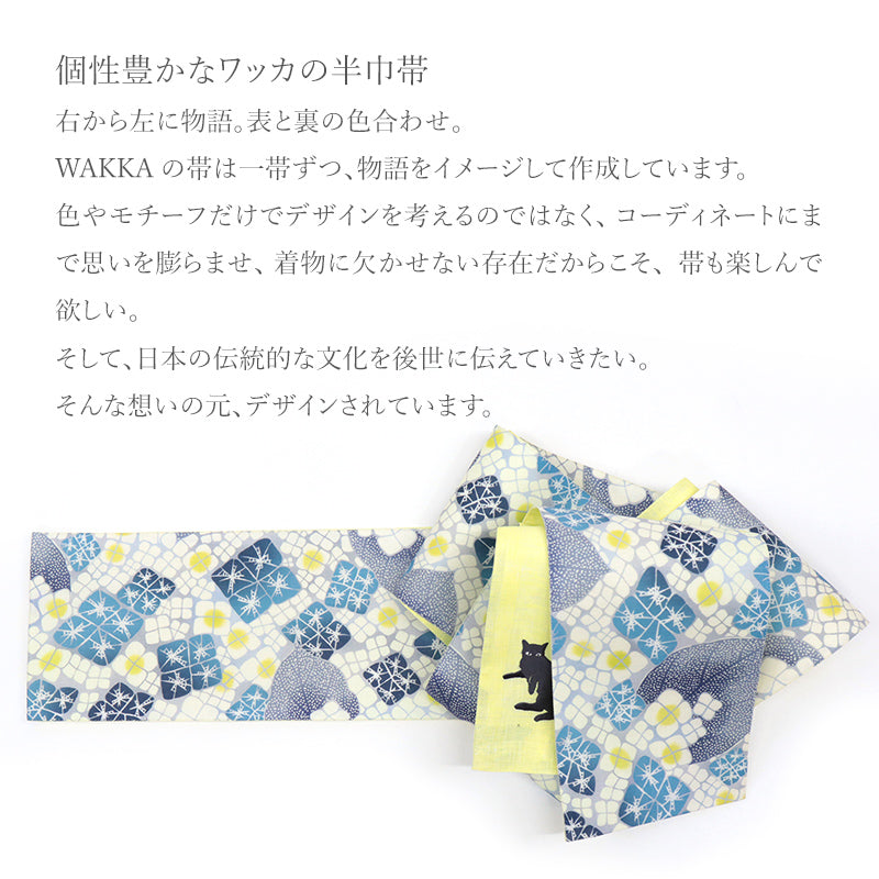 結び方を迷ってしまうほど何通りにも楽しめる、《WAKKA》の半巾帯です。
