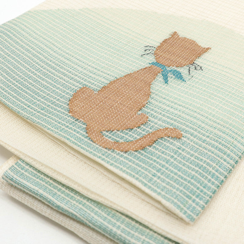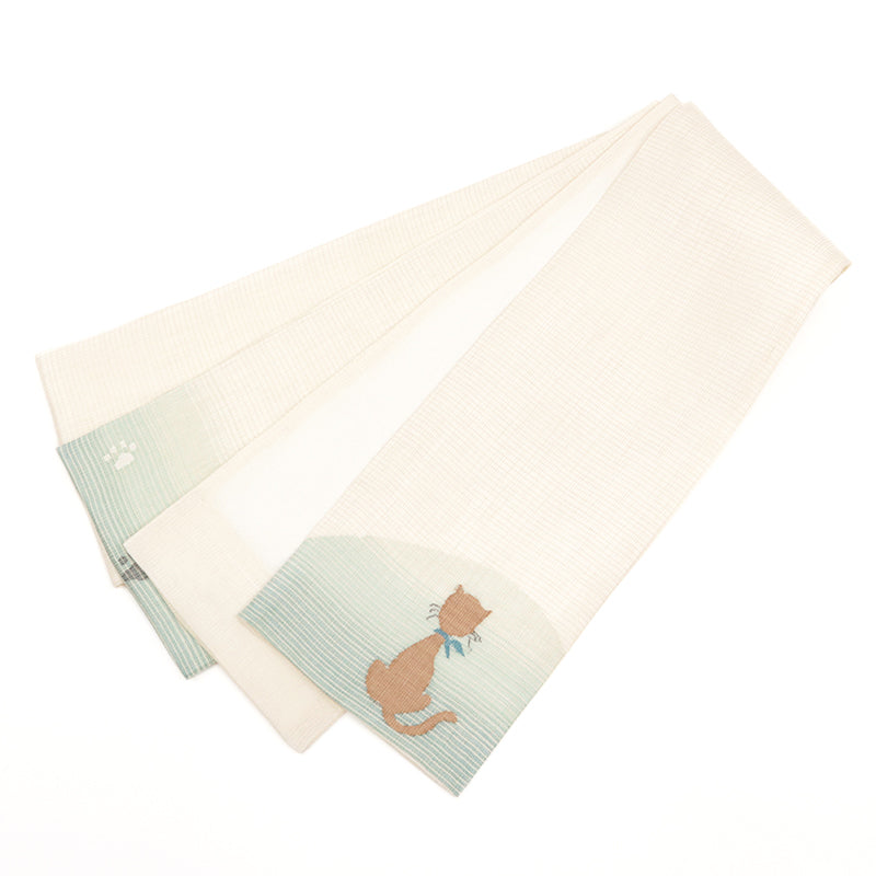 相性がよいのは紬、木綿、ウールなどのカジュアルなふだんきもの。なんともいえない表情のある帯は合わせる着物ごとにどことなく色合いが違って見えるはずです。