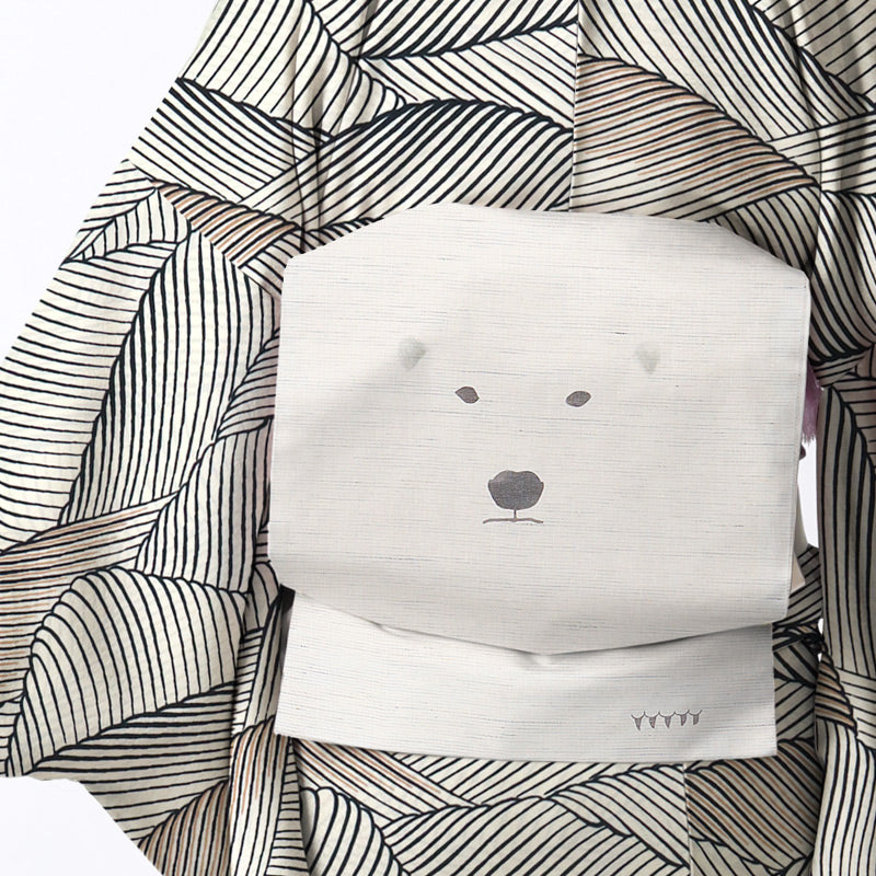 • 画像をギャラリービューアに読み込む, 麻 帯 京袋帯 白《召しませ華》お仕立て上がり 京袋帯 染め帯 全通お太鼓柄 ホワイトグレー 地球の裏側 白くま ペンギン ホワイト