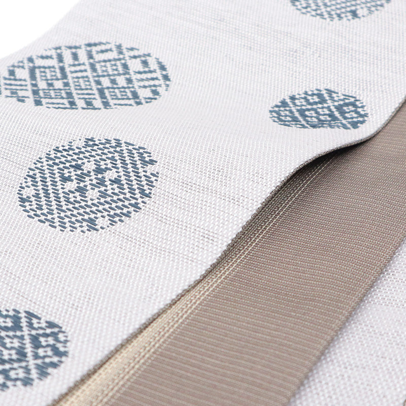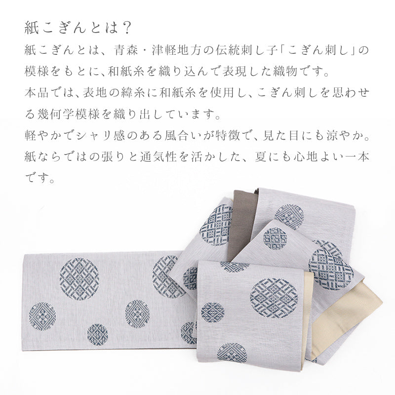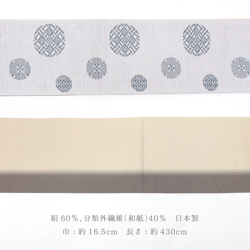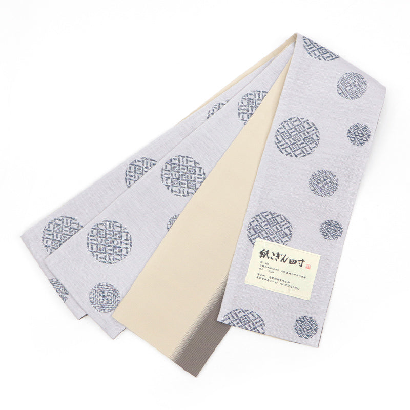丁寧に織り込まれた絹糸はとても手触りがよく、上品な光沢があります。和紙を使用した軽やかな帯地で着物を引き立たせます。