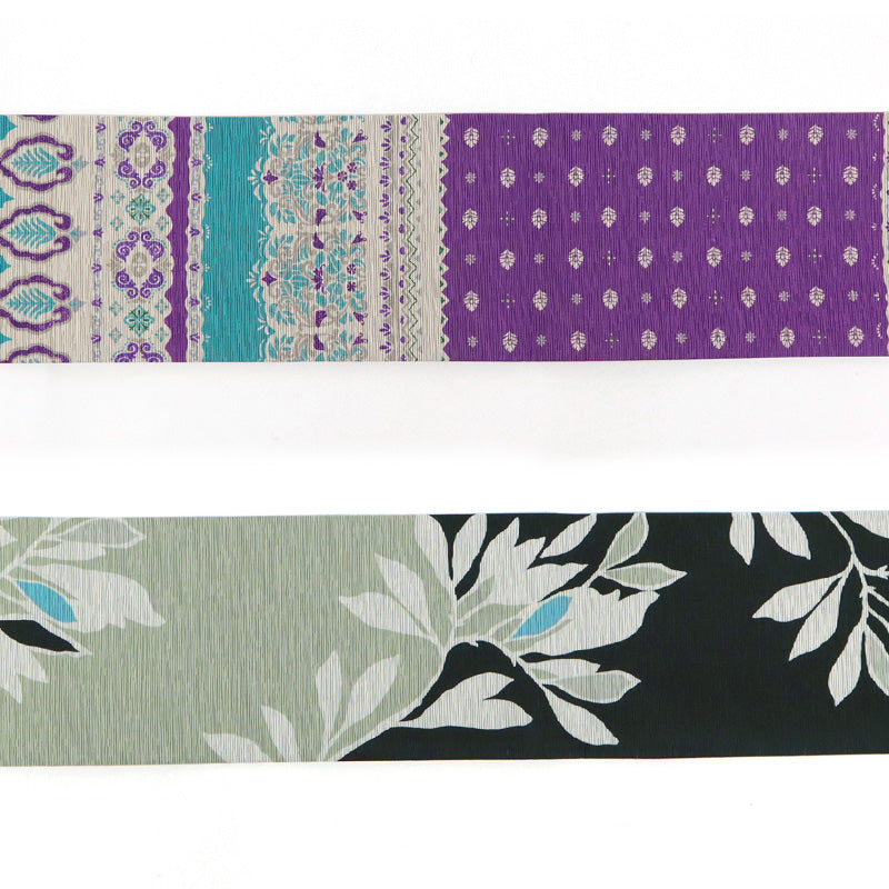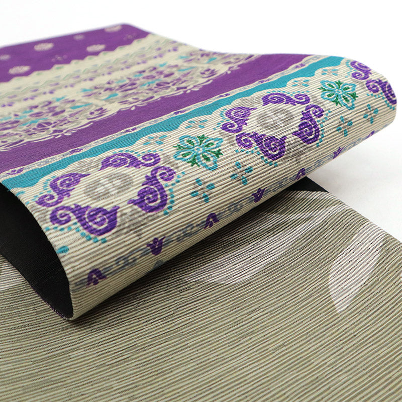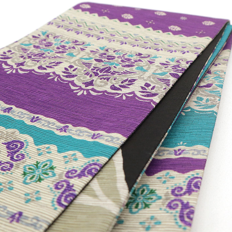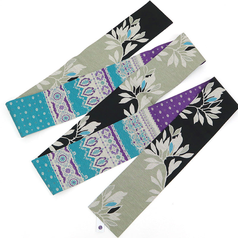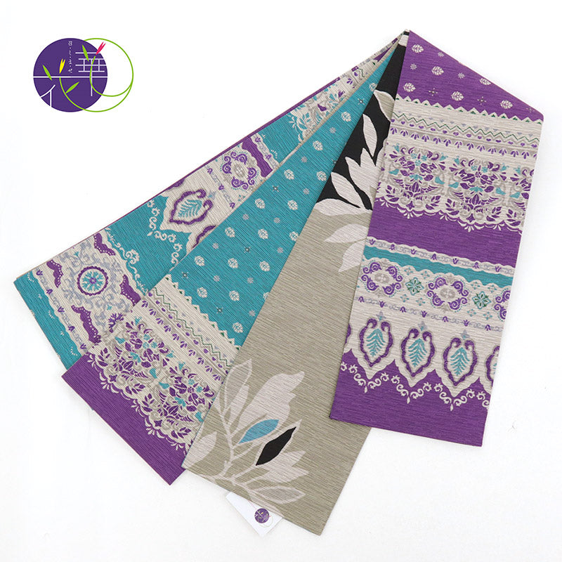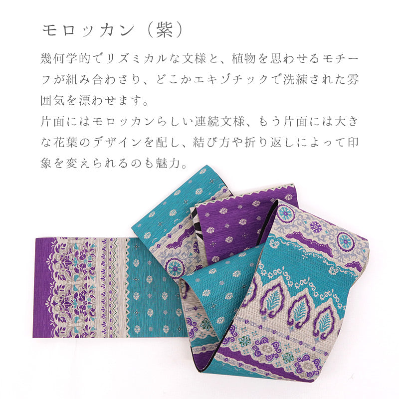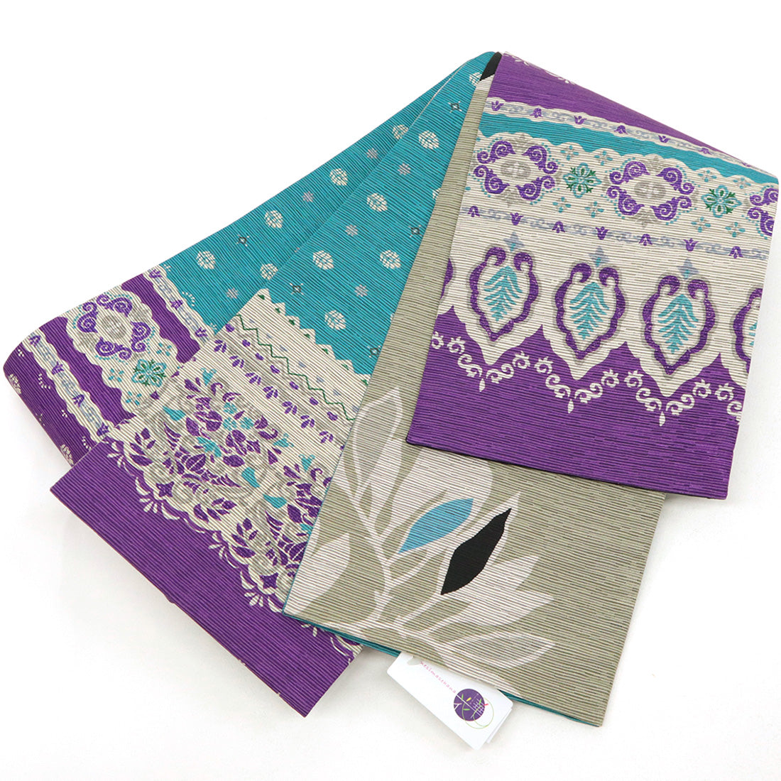 《召しませ華》連続模様 紫 ターコイズ 切り返し モロッカン ( パープル ) リバーシブル半巾帯
