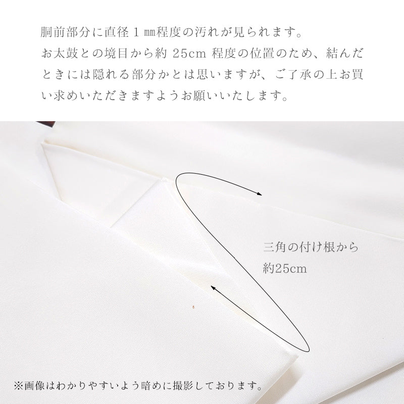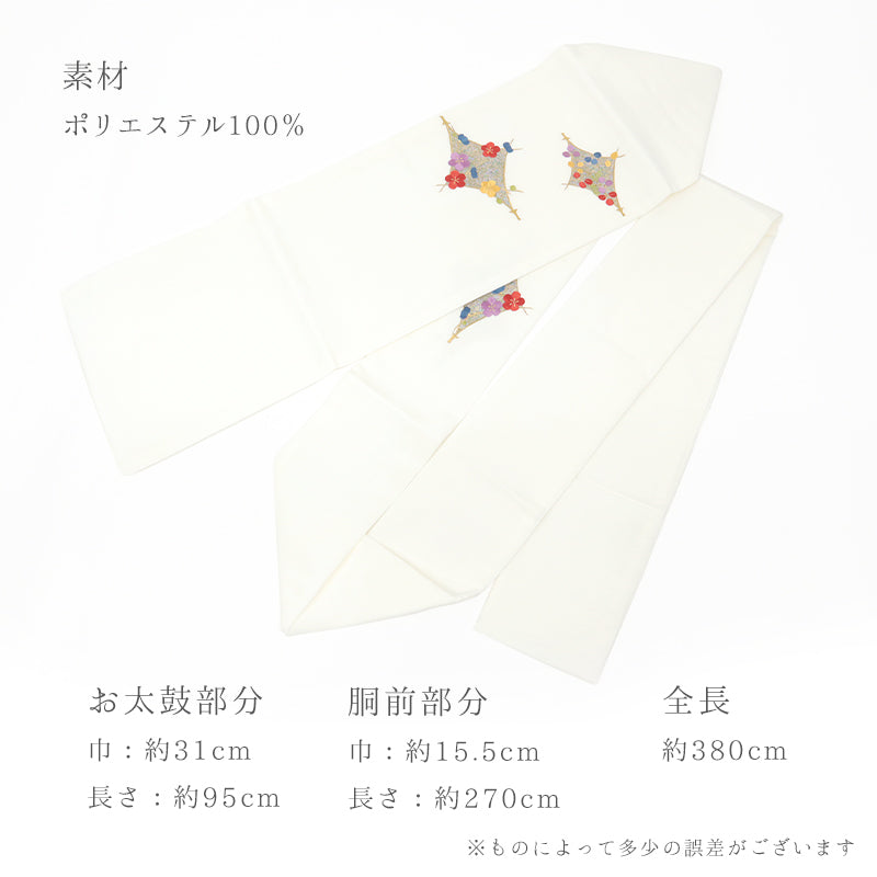 | サイズ | お太鼓巾:約31cm、お太鼓長さ:約95cm、胴前巾:約15.5cm、全長約380cm |