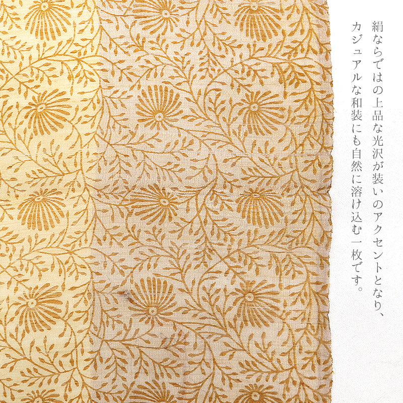絹ならではの上品な光沢が装いのアクセントとなり、カジュアルな和装にも自然に溶け込む一枚です。