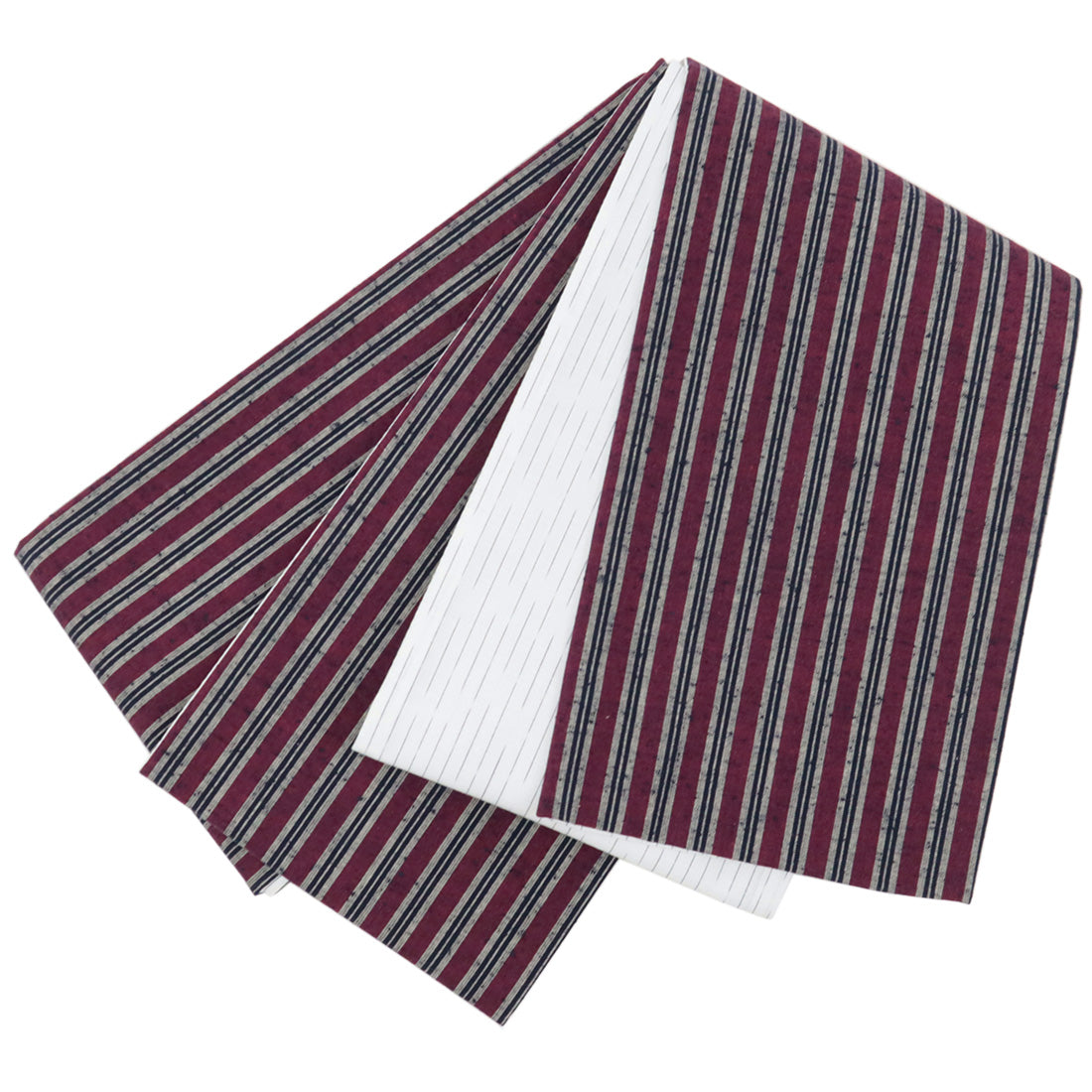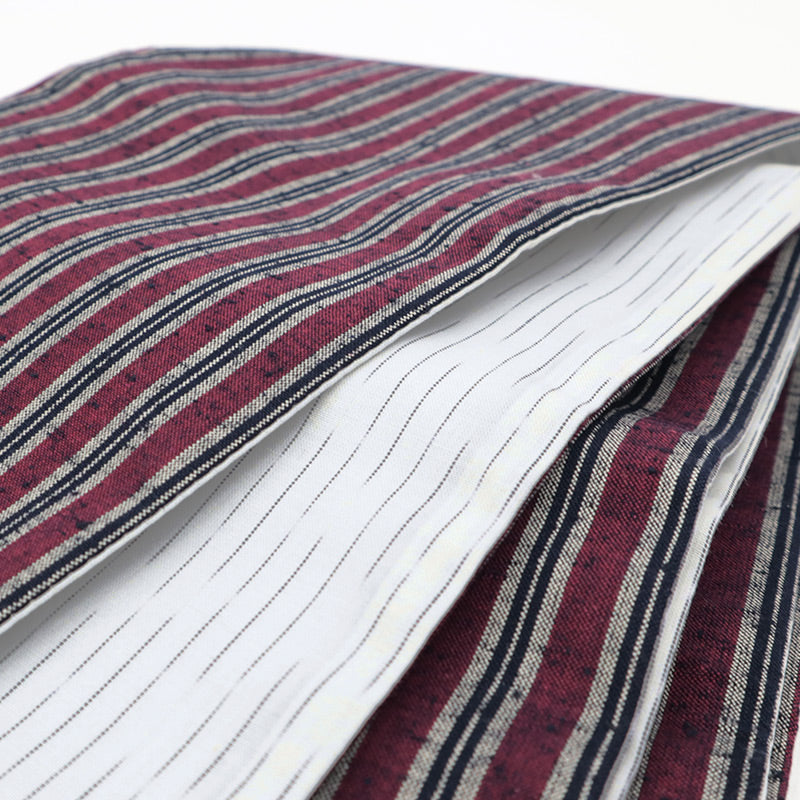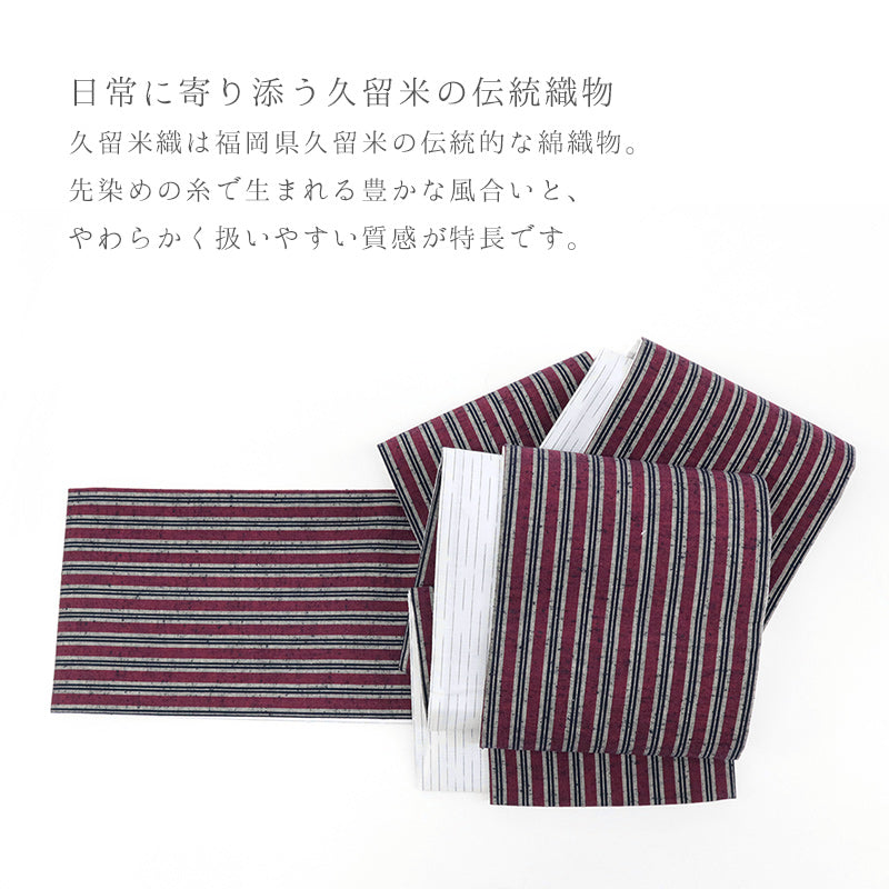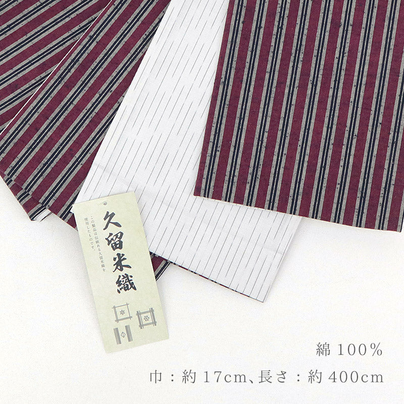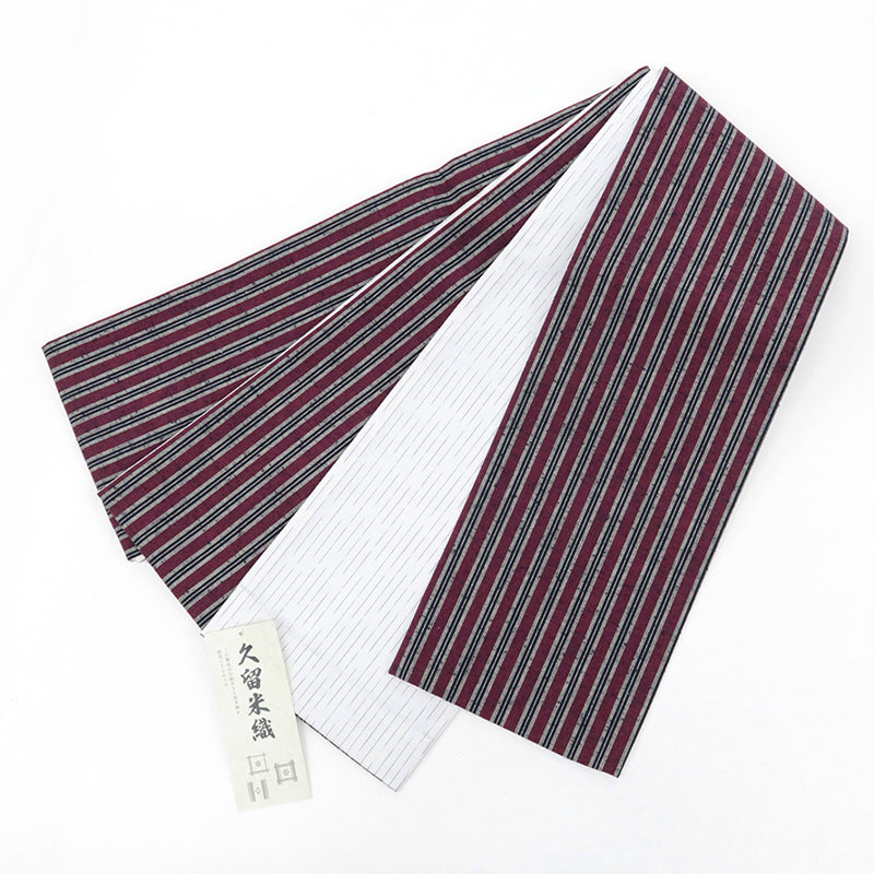 半幅帯 エンジ コットン 木綿 久留米織 三筋縞 エンジ × 掠り縞 ホワイト リバーシブル半巾帯