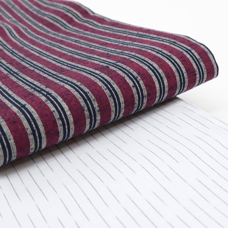 • 画像をギャラリービューアに読み込む, 半幅帯 エンジ コットン 木綿 久留米織 三筋縞 エンジ × 掠り縞 ホワイト リバーシブル半巾帯
