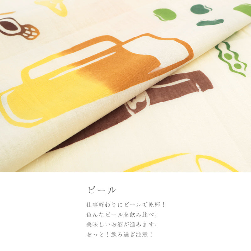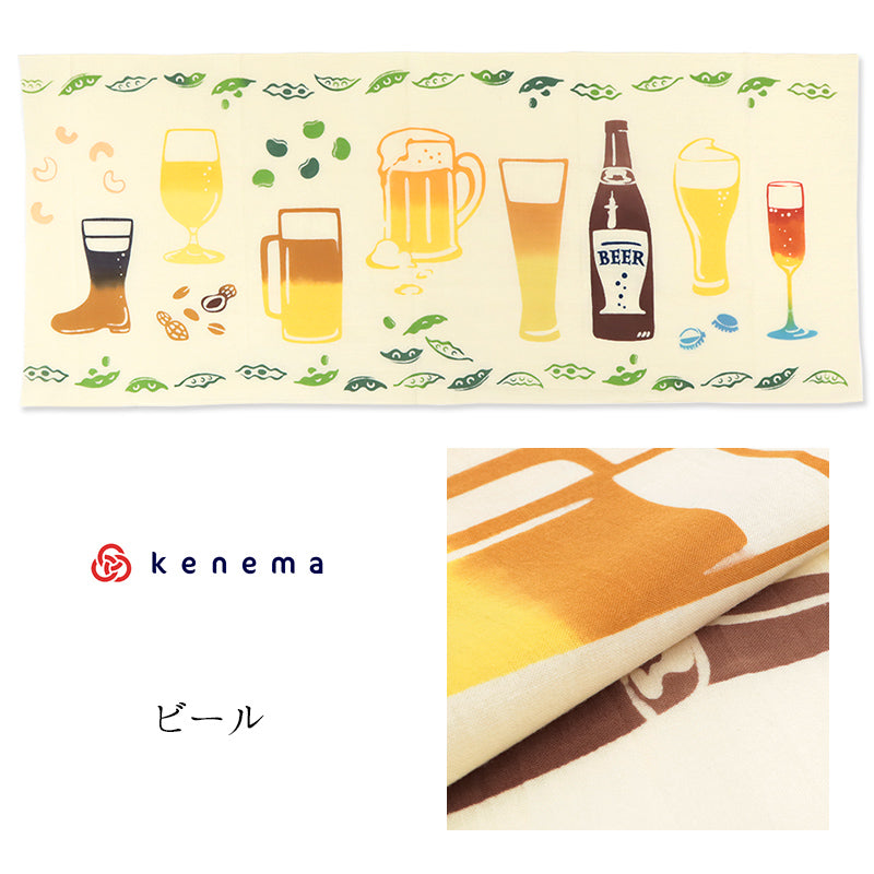 注染 手ぬぐい 【kenema】夏の食べ物 「 ビール 51686 」《 kenema けねま 》 クリーム / ビールジョッキ / ビール瓶 / 枝豆 / おつまみ / アルコール /手拭い / てぬぐい