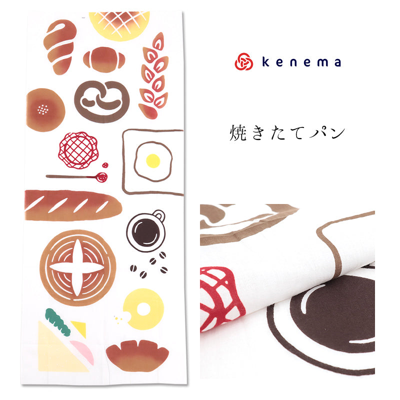 注染 手ぬぐい 【kenema】趣味道楽 「 焼きたてパン 50208 」《 kenema けねま 》 白地 / ホワイト / パン / ベーカリー /パン屋 /朝食 /朝ごはん /手拭い / てぬぐい